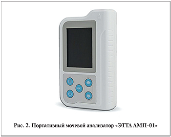 Заключение. Применение портативного анализатора мочи ЭТТА АМП-01 в процессе литолитической терапии препаратом Блемарен позволяет контролировать больше параметров по сравнению с использованием стандартных индикаторных тест-полосок (определение рН мочи).